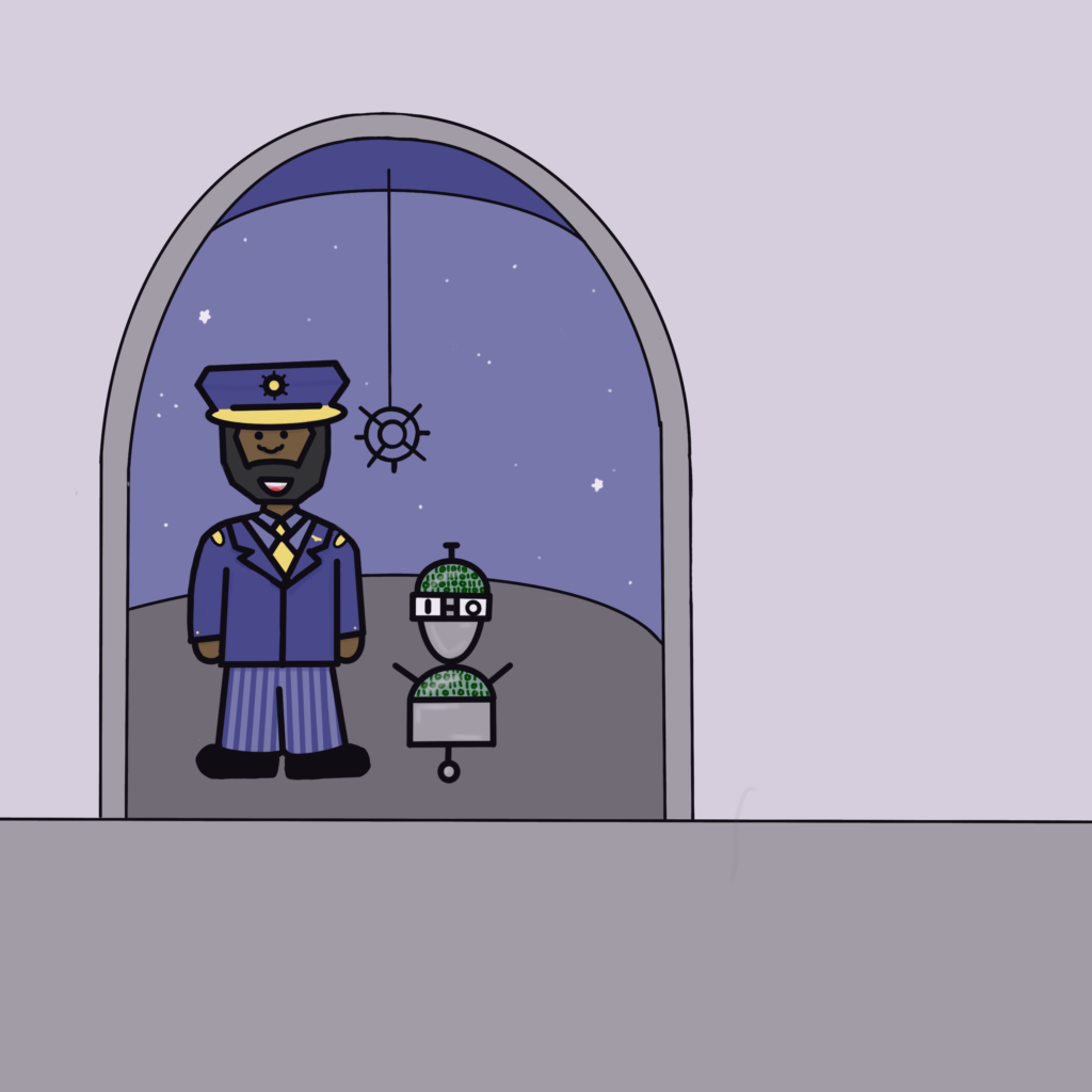 H-ector the robot lives on a spaceship with other robots and people. Every one on the spaceship seems to have an important job.